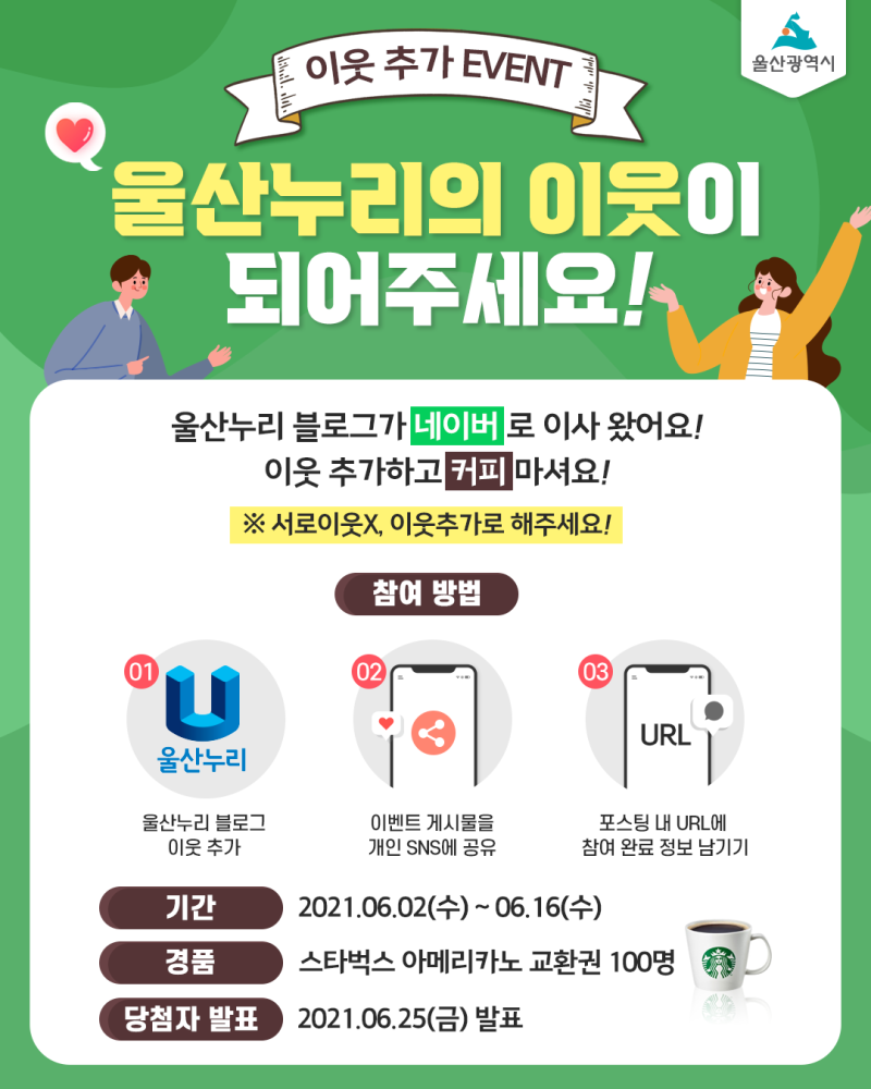 게시 내용 : 친구 추가를 위해 이벤트 게시글 및 스크랩에 댓글을 남겨주셔야 이벤트 참여가 승인됩니다. 조건 1 : 쿵이달맘을 친구로 추가하신 분 (아래 링크 참조) https://blog.naver.com/mimic7027